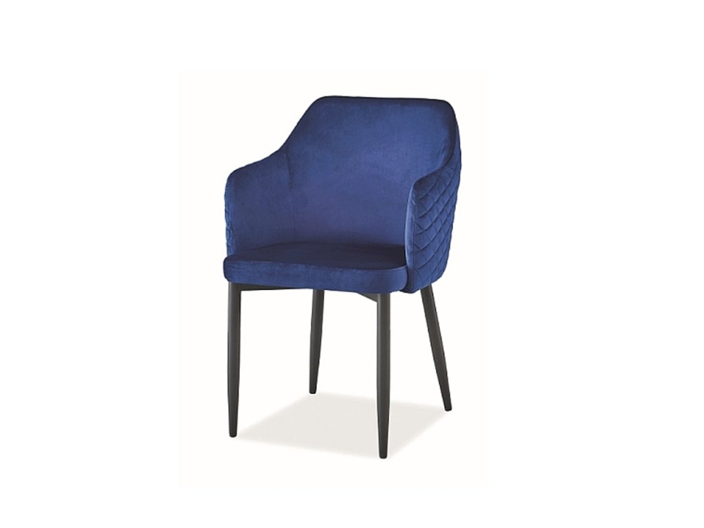 Čalouněné křeslo TORAS patří mezi stylové jídelní židle. Křeslo nabízí pohodlné a měkké sezení. Zajímavé provedení opěrky zad v obloukovém tvaru vytváří také prostor pro pohodlné položení rukou. Designové provedení je zvýrazněno efektním prošitím zadní strany. Židle je čalouněna kvalitní sametovou látkou v barevném provedení modrá. Konstrukce je kovová, v barevném provedení černá. Výška sedáku je cca 47 cm. Rozměry (š/v/h): 46 x 84 x 46 cm. Dodáváme v demontu.Doplňkové parametry