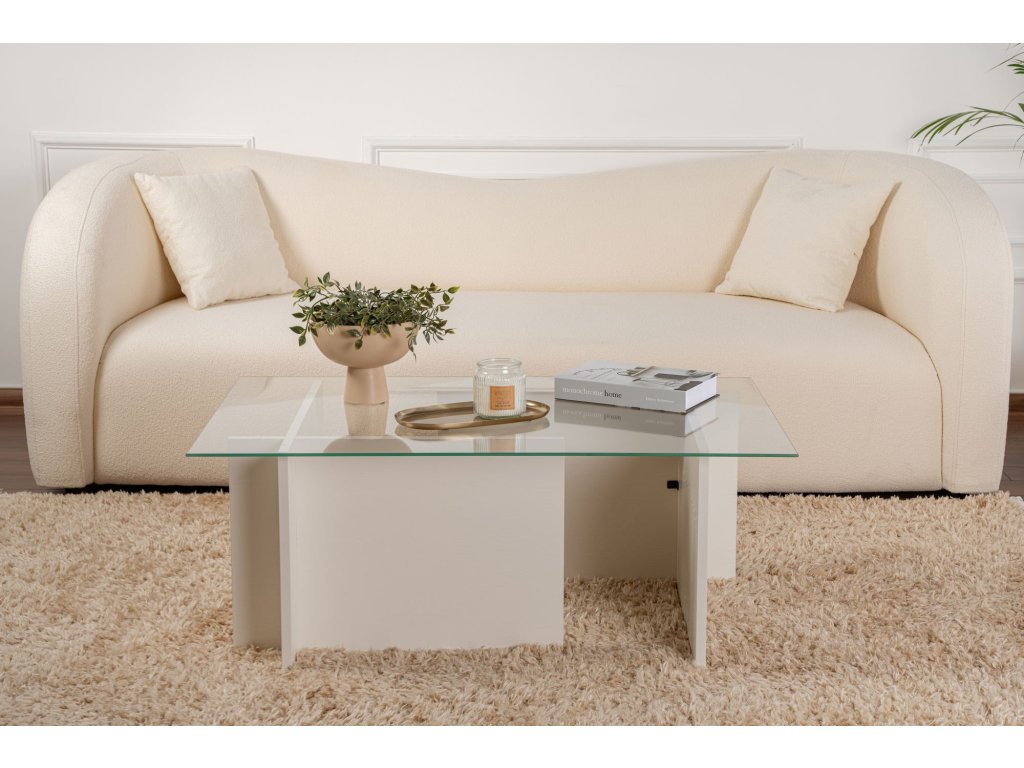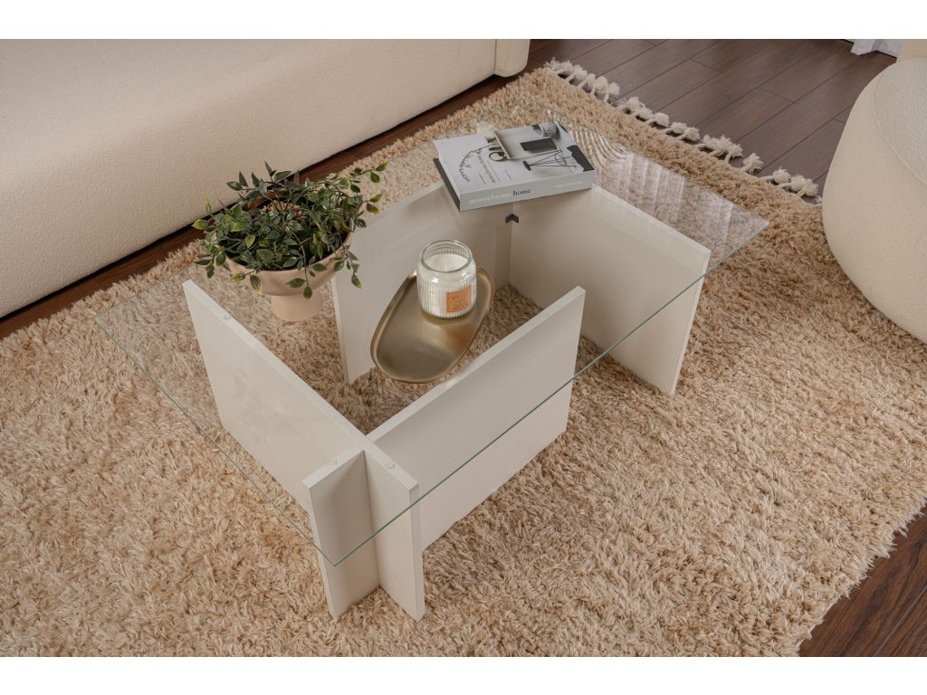 Pozdvihněte svůj obytný prostor s naším úžasným dřevěným bílým konferenčním stolkem. Tento konferenční stolek je vyroben ze 100% tvrzeného skla a má rám z dřevotřísky s melaminovým povlakem, takže vyzařuje eleganci a sofistikovanost.