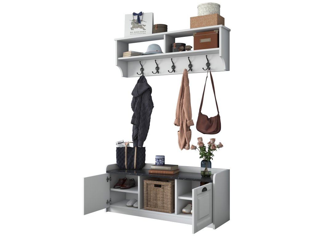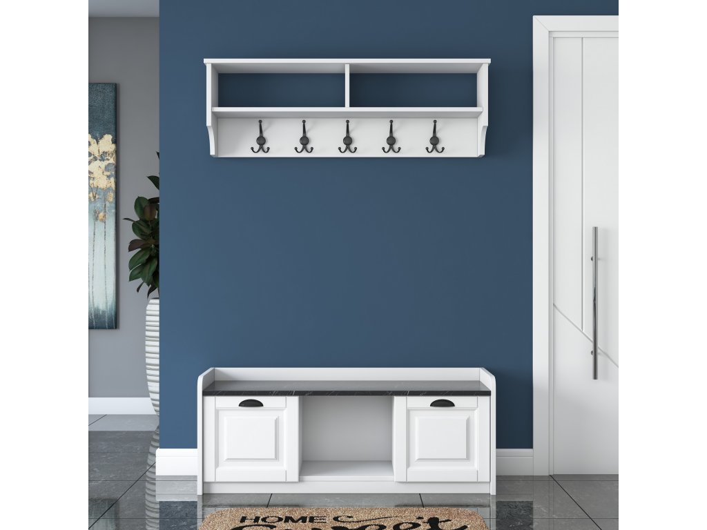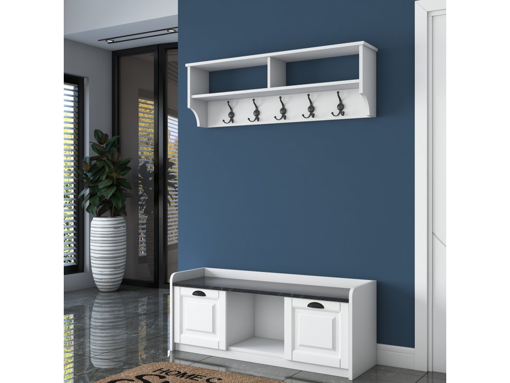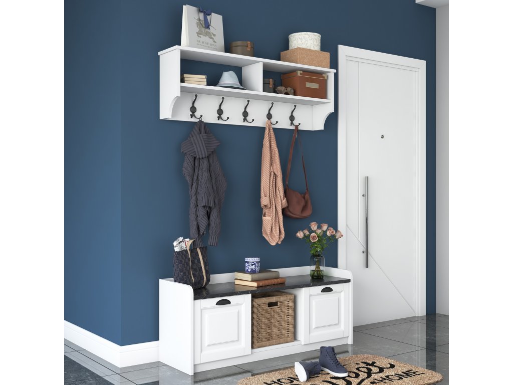 - Závěsný věšák s policí: ideální pro odkládání kabátů, tašek nebo klobouků.