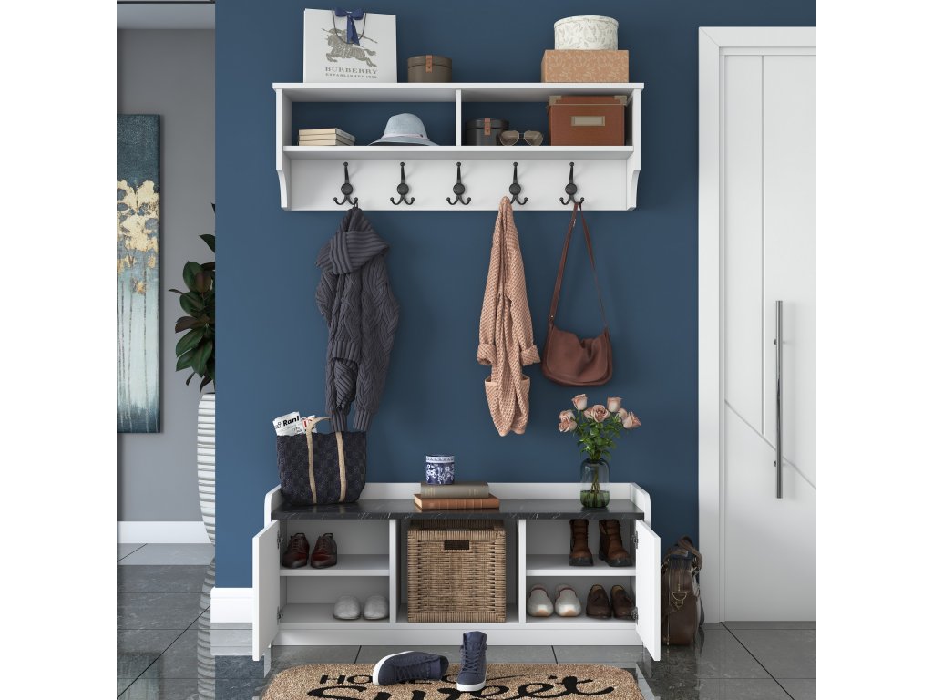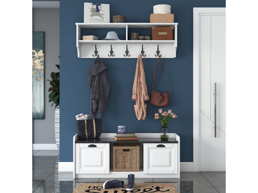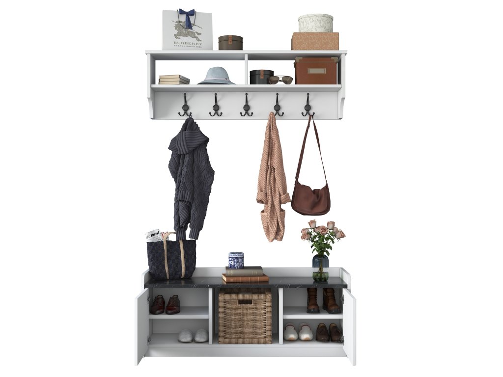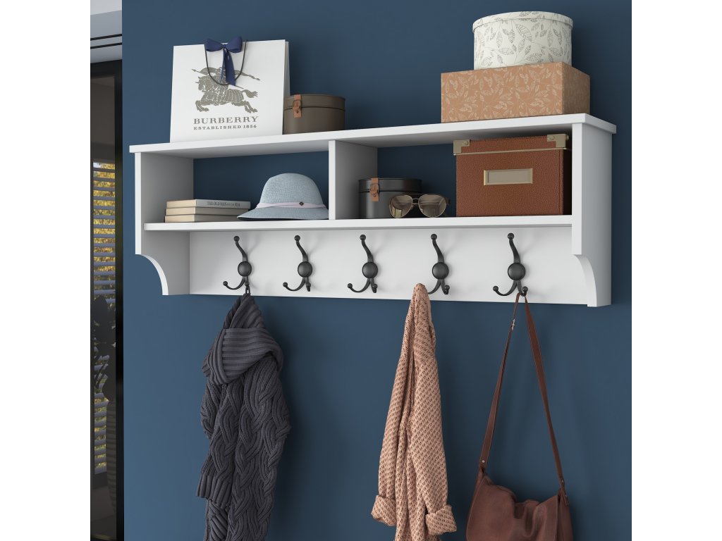 - Závěsný věšák s policí: ideální pro odkládání kabátů, tašek nebo klobouků.
