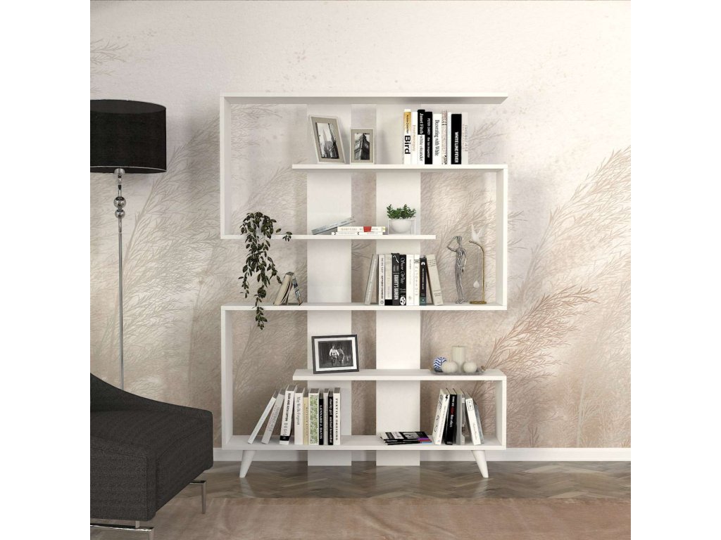 Regál TRAIN se pyšní svým čistým bílým designem a praktickým uspořádáním, které je ideální pro skladování knih, dekorací nebo kancelářských potřeb. Čtyři pevné police poskytují dostatek úložného prostoru a robustní LTD materiál o tloušťce 18 mm zajišťuje dlouhou životnost a stabilitu.