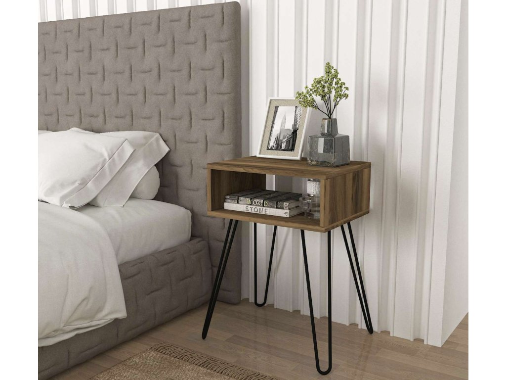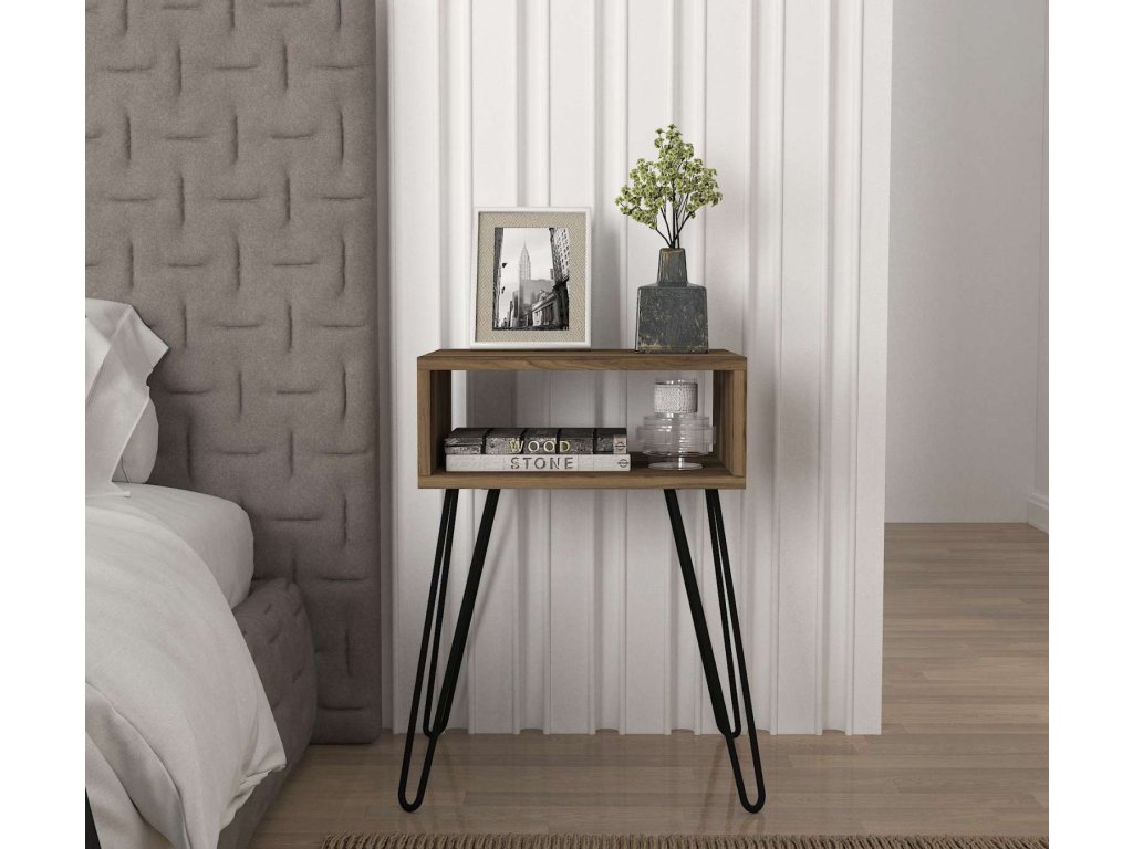Stolek TRAUMA vyniká svým ořechovým designem a obdélníkovým tvarem, který je nejen praktický, ale i esteticky atraktivní. Díky odkládací polici poskytuje dostatek úložného prostoru pro vaše knihy, časopisy nebo dekorace. Kombinace LTD materiálu o tloušťce 18 mm a kovu zajišťuje pevnost a dlouhou životnost tohoto stolku.