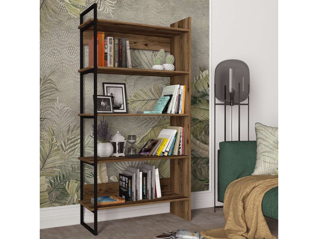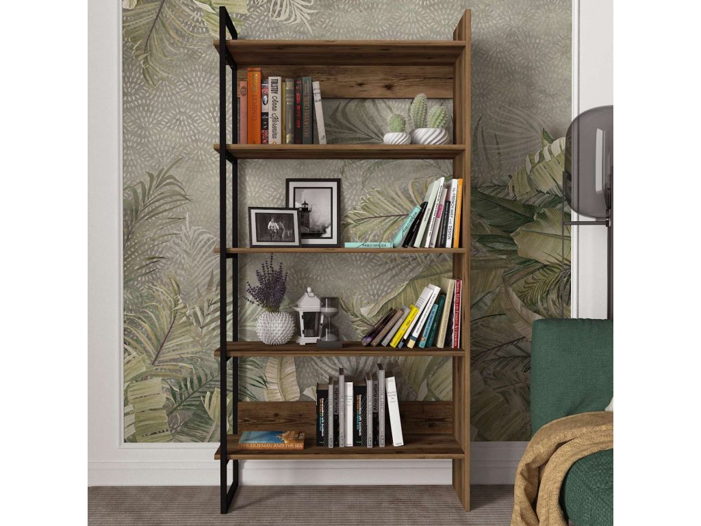 Regál TREE vyniká svým moderním a robustním designem, který se skvěle hodí do jakéhokoliv interiéru. Čtyři pevné police poskytují dostatek úložného prostoru pro knihy, dekorace či kancelářské potřeby. Loftový a industriální styl v kombinaci s ořechovou barvou dodává regálu elegantní vzhled. Robustní LTD materiál o tloušťce 18 mm zajišťuje dlouhou životnost a stabilitu tohoto regálu.