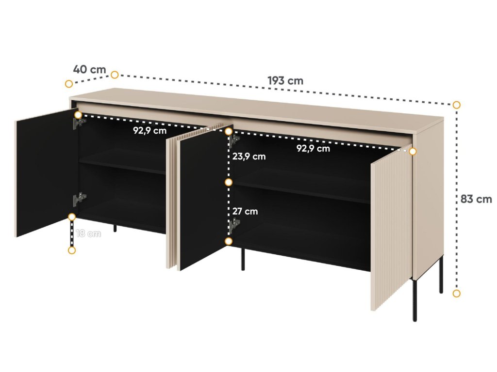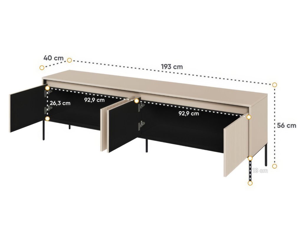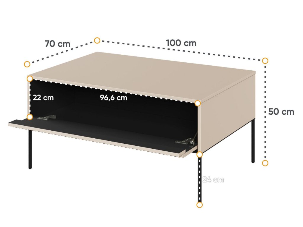 Kovové štíhlé pevné nožky černé barvy dodávají nábytku lehkost.