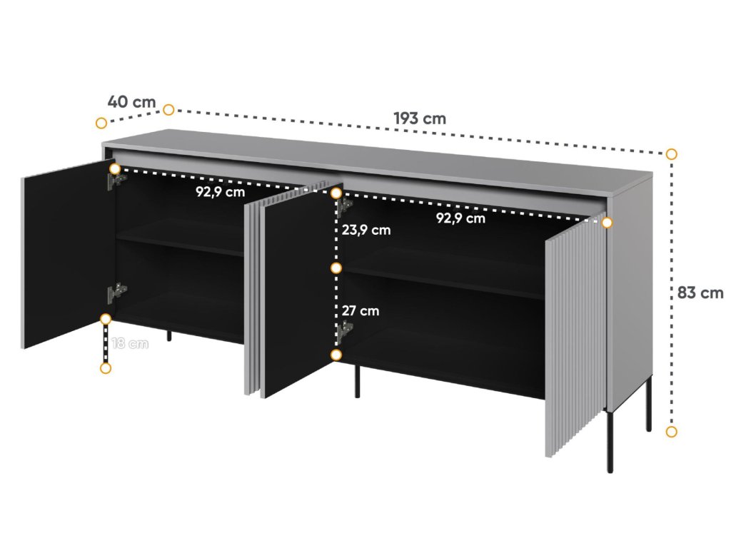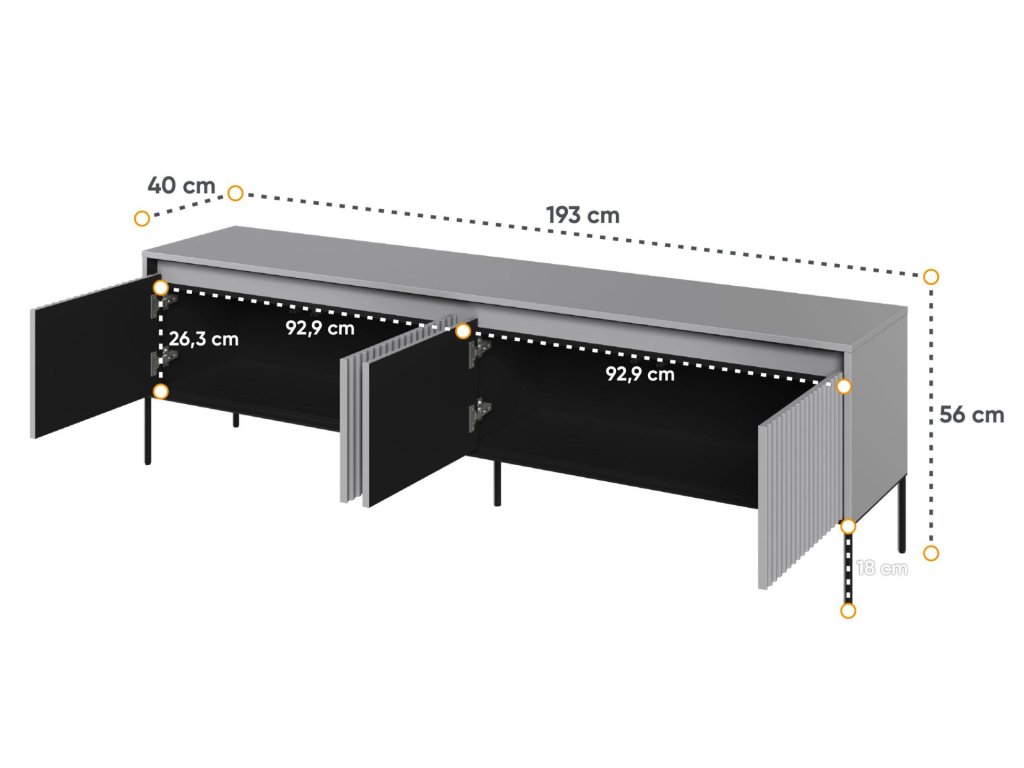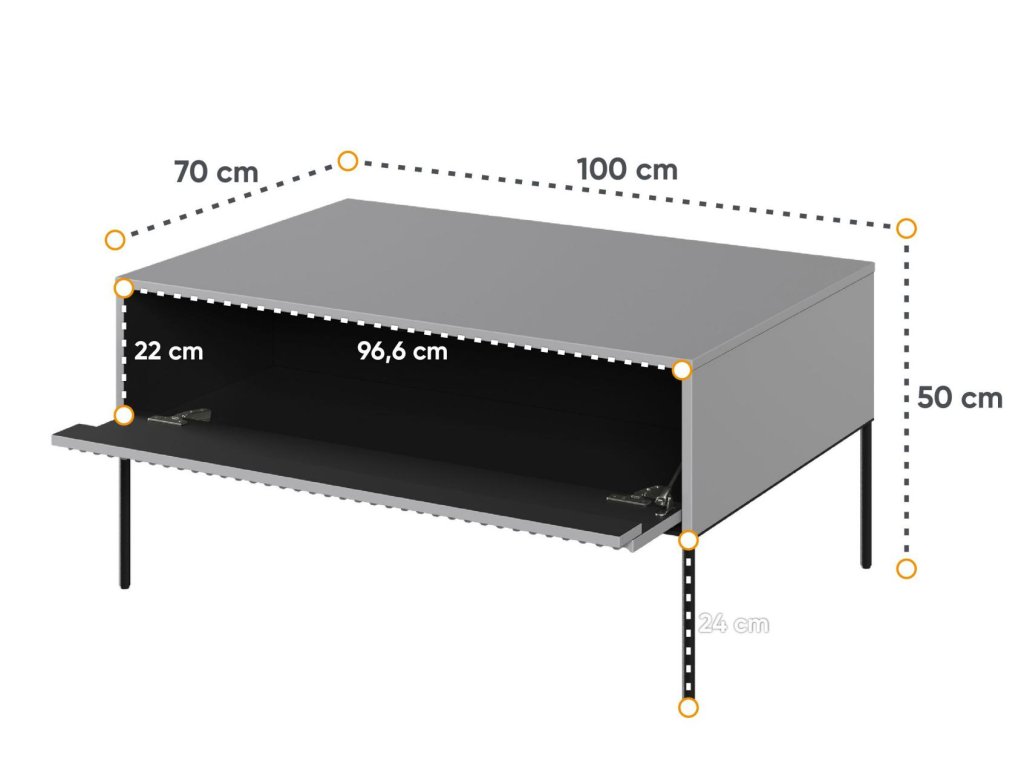 Kovové štíhlé pevné nožky černé barvy dodávají nábytku lehkost.