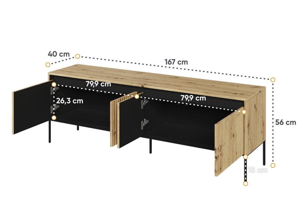 TREND TR-05 televizní stolek 4D s LED 167 barva dub artisan/černá