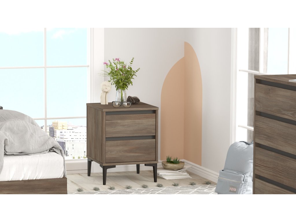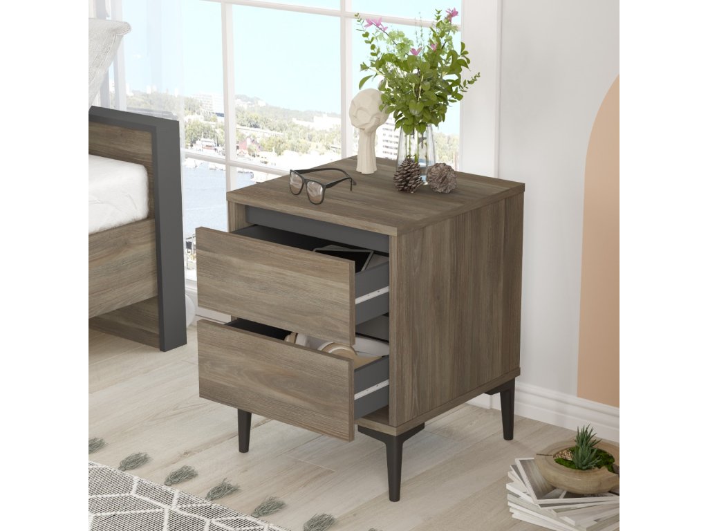 Noční stolek vhodný do ložnice. Praktické úložné prostory a odolný materiál.