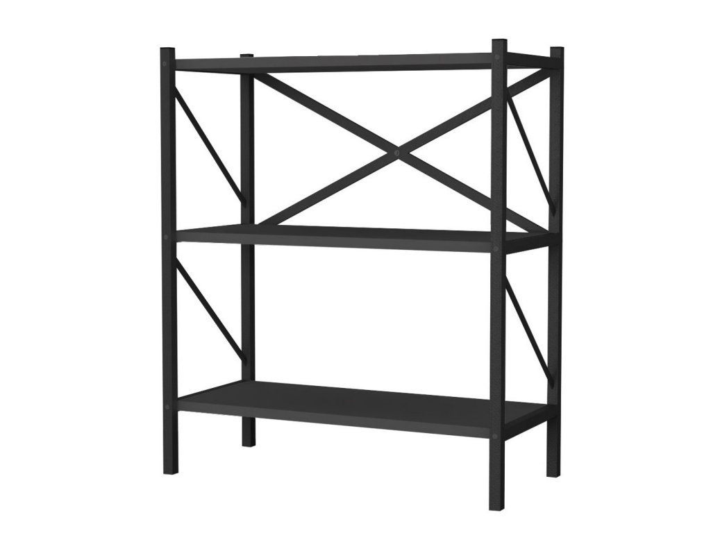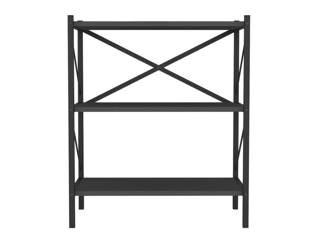 Desky regálu jsou vyrobeny z 18 mm dřevotřískové desky. Konstrukce je vyrobena z kovu v černém provedení.