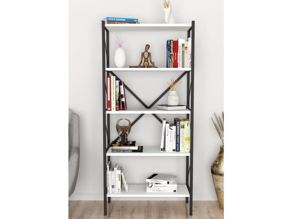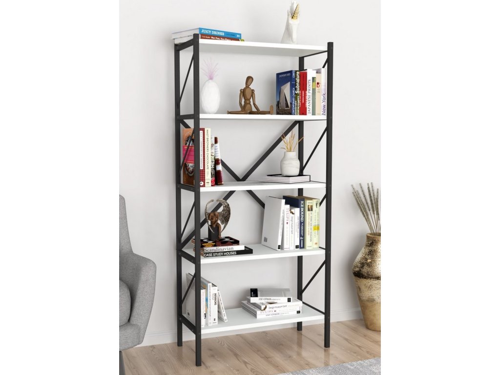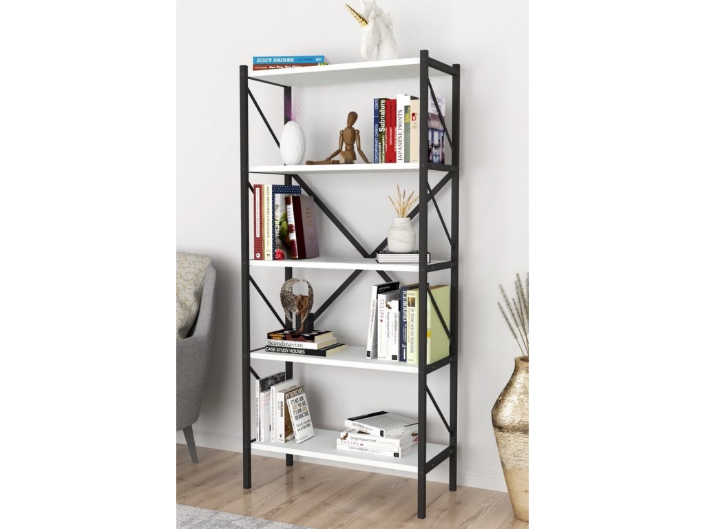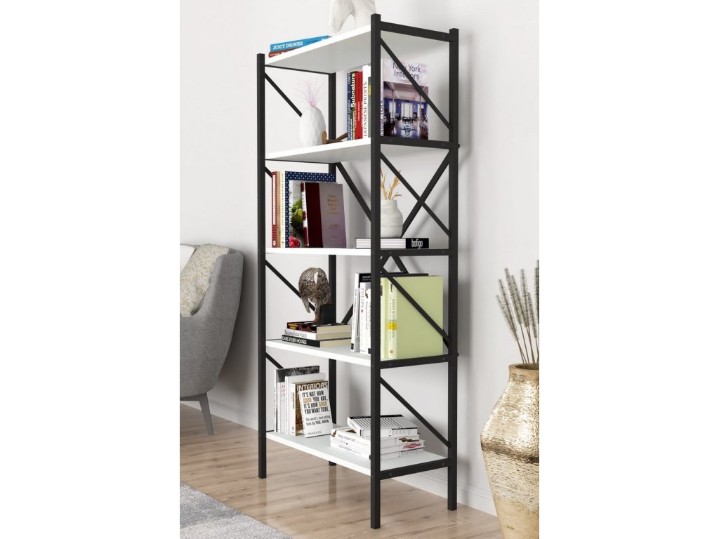 TRIER 5 regál - knihovna, bílá/černá