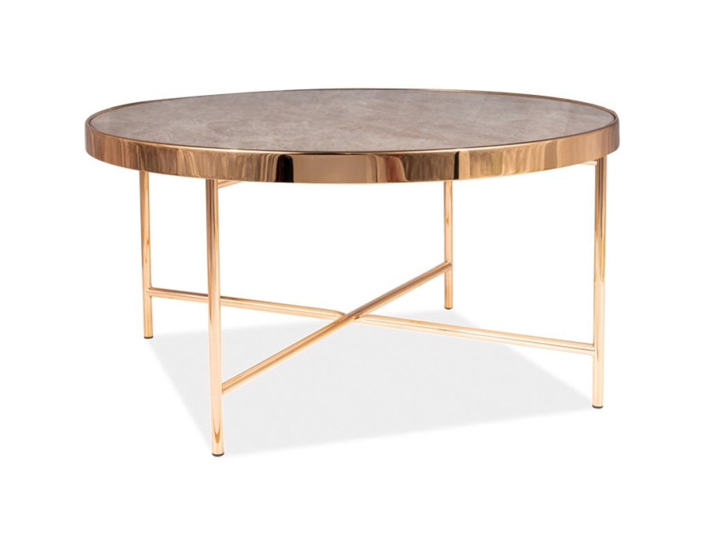 Kulatý konferenční stolek TUBAR v designovém provedení, osloví každého zastánce industriálního stylu. Moderní materiály vytváří zajímavou koncepci, která zvýrazní místnost. Luxusní barvy zaručí eleganci a stylovost. Osloví Vás stylová deska stolu s efetem mramoru, která je zapracována do kruhové konstrukce. Konstrukce stolku je kovová, ve zlatém provedení, vrchní deska je z tvrzeného skla s mramorovým efektem. Rozměry stolku (výška/průměr): 40 x 82 cm. Dodáváme v demontu.Buďte první, kdo napíše příspěvek k této položce.
