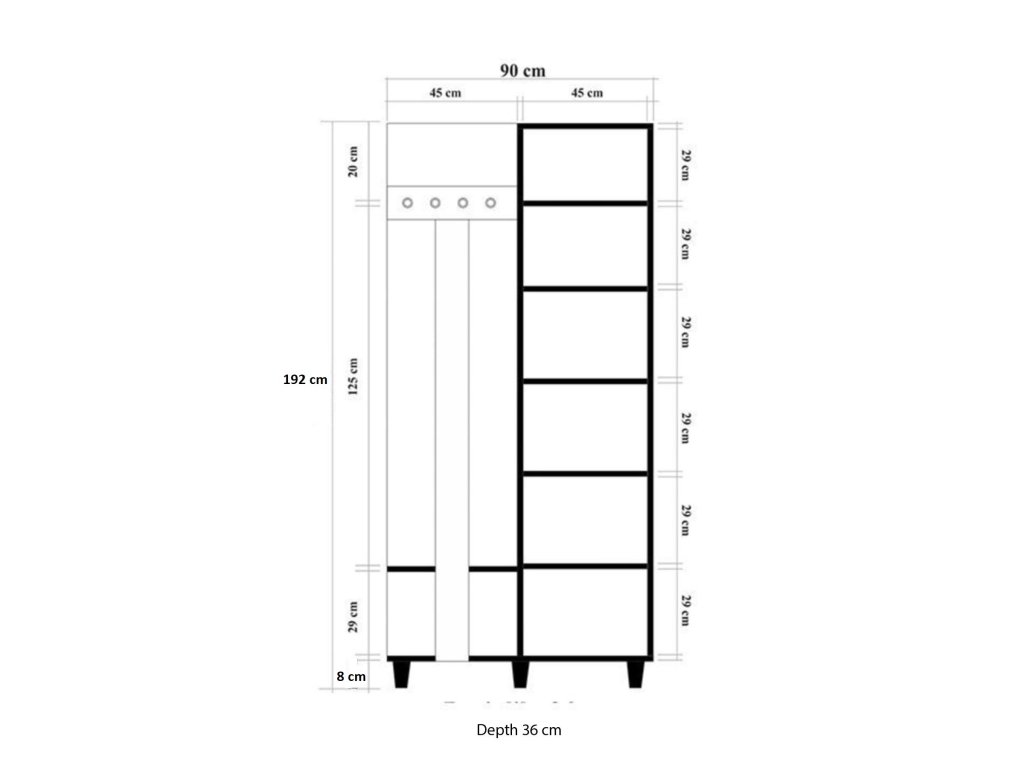 - Šířka: 90 cm, Výška: 192 cm, Hloubka: 36 cm