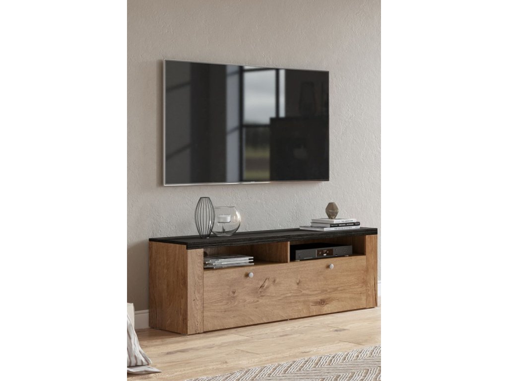 Tv stolek LANA 41 má dvě otevřené poličky, kde si můžete uložit elektronická zařízení a v dolní části je šuplík se dvěma úchyty, který Vám poslouží pro rychlé odložení nepotřebných dokumentů.