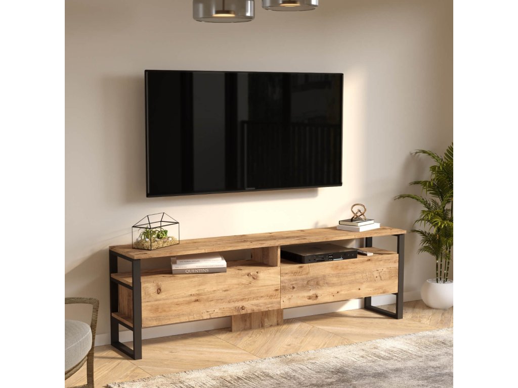 TV stolek MILI 19, barva borovice + černý kov
