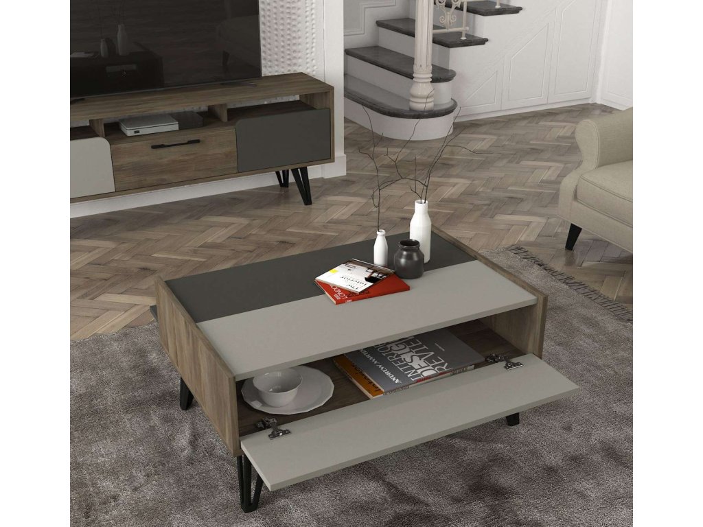 Představujeme URGES, konferenční stolek, který přináší do vašeho obývacího pokoje moderní a funkční design. Tento stylový nábytek v kombinaci šedé, hnědé a antracitové barvy je navržen tak, aby poskytoval praktické a estetické řešení pro vaše potřeby.