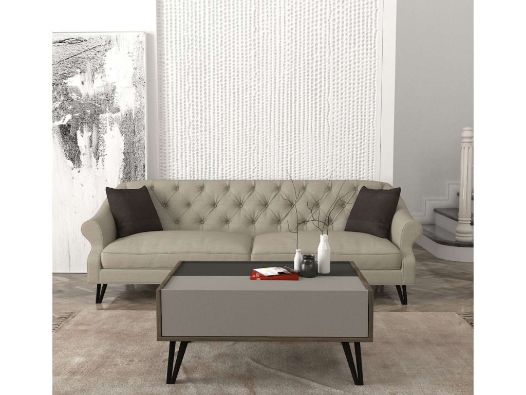 Konferenční stolek URGES je ideální volbou pro ty, kteří hledají moderní a funkční nábytek s dostatečným úložným prostorem. Jeho kombinace šedé, hnědé a antracitové barvy a minimalistický design přinášejí do vašeho domova svěžest a moderní styl, zatímco poskytují dostatek úložného prostoru pro všechny vaše potřeby.