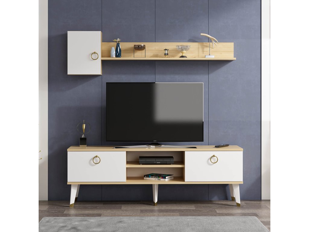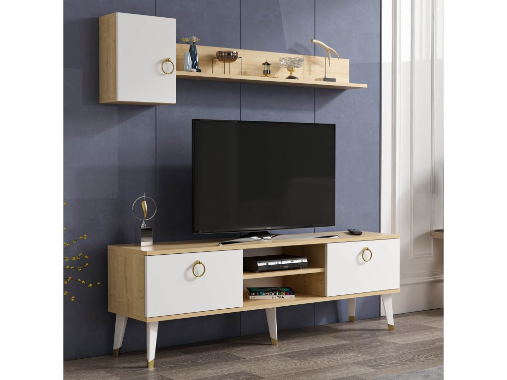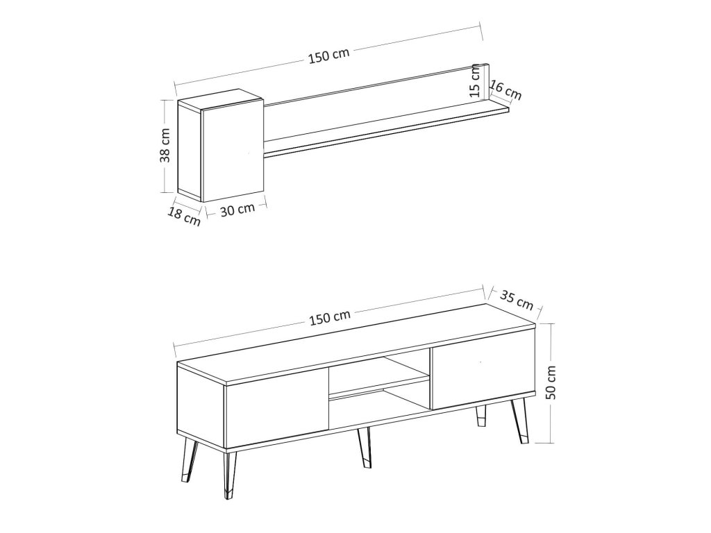 - Sestava obsahuje: TV stolek, nástěnná police se závěsnou skříňkou