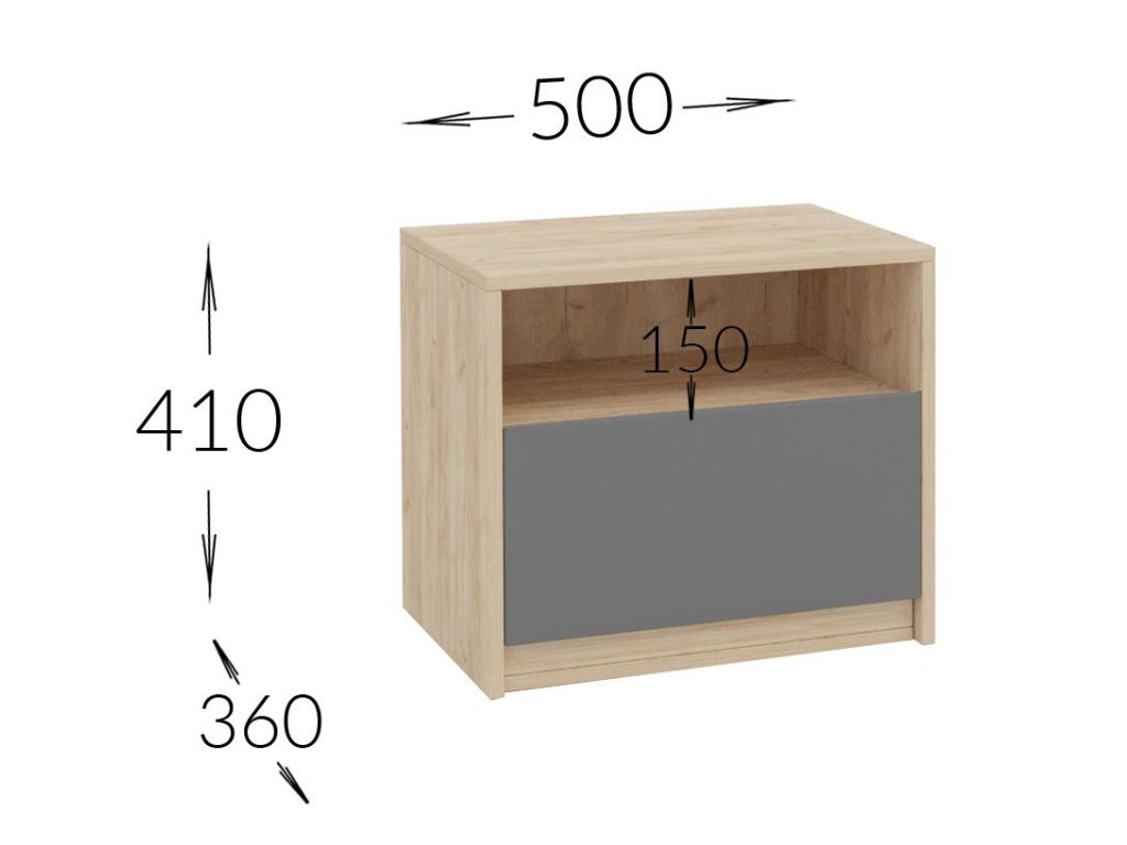2× noční stolek s 1 zásuvkou – (Š/V/H) 50/41/36 cm