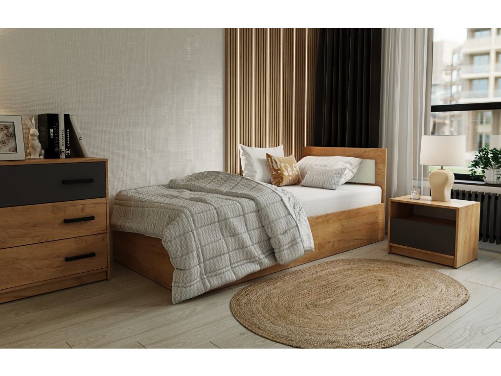 Výhody: Kompaktní a pohodlné jednolůžko. Ideální volba pro ty, kteří si cení komfortu a funkčnosti. Skvělá volba do moderních interiérů, kde se snoubí estetika a pohodlí.