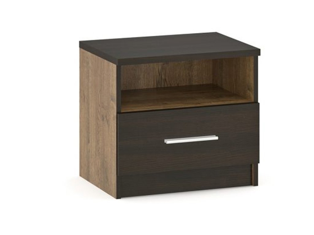 Moderní ložnicový nábytek VALENTÝNA poskytne to pravé útočiště od všedních povinností a starostí. Svou barevnou kombinací dub april s tmavým kontrastem wenge zajistí nadčasovost a stylovost. Sektor zahrnuje dostatek komponentů, díky kterým si vytvoříte výjimečnou ložnici plnou pohodlí. Součástí ložnice je set dvou nočních stolků VALENTÝNA. Stolky jsou vyrobeny z velmi kvalitní LTD desky, která se snadno udržuje. Stolky mají jeden šuplík a otevřenou polici. Šuplík je ozvláštněn o elegantní úchytku stříbrné barvy. Barva stolků je dub april/wenge. Rozměry: - šířka: 50,2 cm, - výška: 45,6 cm, - hloubka: 37,2 cm. Dodáváme v demontu, přičemž montáž je velmi jednoduchá.Doplňkové parametry
