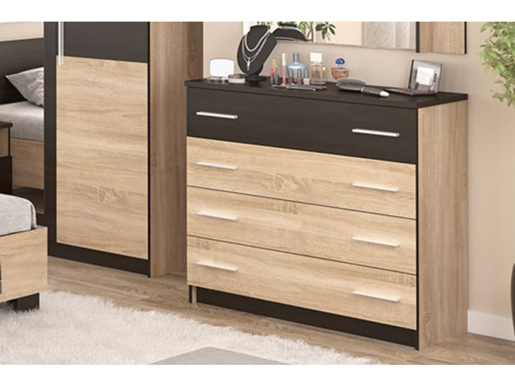Moderní ložnicový nábytek VALENTÝNA poskytne to pravé útočiště od všedních povinností a starostí. Svou svěží barevnou kombinací dub sonoma s tmavým kontrastem wenge zajistí nadčasovost a stylovost. Sektor zahrnuje dostatek komponentů, díky kterým si vytvoříte výjimečnou ložnici plnou pohodlí. Součástí ložnice je šuplíková komoda VALENTÝNA. Komoda má 4 šuplíky, které zajistí dostatek úložného prostoru. Vyrobena je z velmi kvalitní LTD desky, která se snadno udržuje. Barva je dub sonoma/wenge. Šmrnc jí dodávají elegantní úchyty stříbrné barvy. Rozměry: - šířka: 102,8 cm, - výška: 91,2 cm, - hloubka: 40,1 cm. Dodáváme v demontu, přičemž montáž je velmi jednoduchá.Doplňkové parametry