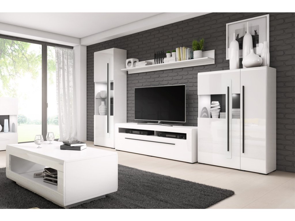 VALICIA 05 prosklená vitrína, bílý lesk