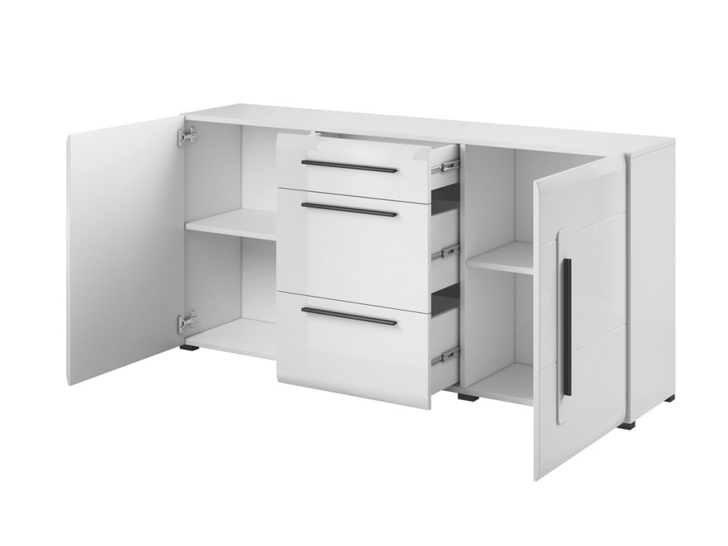 Kombinovaná komoda VALICIA je součástí stylového obývacího sektoru VALICIA. I díky ní si vytvoříte vysněnou ložnici podle vašich představ. Korpus komody je vyroben z LTD desek. Fronta je vyrobena z kvalitních MDF desek, které jsou nenáročné na údržbu. Eleganci dotváří stylové dlouhé úchyty. Barevné provedení je ve stylové barvě: bílý lesk. Komoda je dvoudveřová. V každé části se nachází jedna police. Také disponuje třemi praktickými šuplíky. Rozměry (š,v,h): 180 x 86 x 39 cm. VALICIA je stylový obývací sektor, který svým provedením zaujme i náročnější uživatele. Je vhodný do různých typů interiérů. V nabídce také v dalším barevném provedení. Dodáváme v demontovaném stavu.Doplňkové parametry
