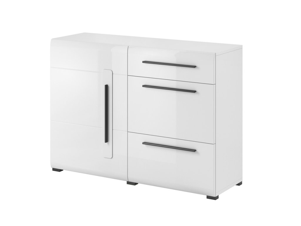 Kombinovaná komoda VALICIA je součástí stylového obývacího sektoru VALICIA. I díky ní si vytvoříte vysněnou ložnici podle vašich představ. Korpus komody je vyroben z LTD desek. Fronta je vyrobena z kvalitních MDF desek, které jsou nenáročné na údržbu. Eleganci dotváří stylové dlouhé úchyty. Barevné provedení je ve stylové barvě: bílý lesk. Komoda je jednodvéřová. Uvnitř je jedna police. Disponuje také třemi praktikými zásuvkami. Rozměry (š,v,h): 120 x 86 x 39 cm. VALICIA je stylový obývací sektor, který svým provedením zaujme i náročnější uživatele. Je vhodný do různých typů interiérů. V nabídce také v dalším barevném provedení. Dodáváme v demontovaném stavu.Doplňkové parametry