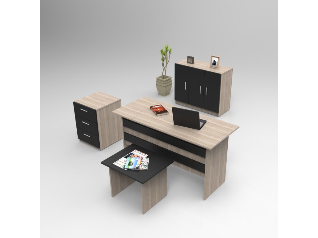 VARIO 12 kombinuje funkčnost a moderní styl. Psací stůl poskytuje komfortní prostor pro práci, konferenční stolek je ideální pro schůzky nebo odkládání dokumentů, malá komoda nabízí praktické úložné řešení a větší komoda poskytuje dostatek místa na šanony, knihy nebo pracovní pomůcky.
