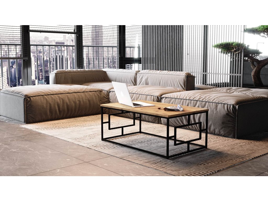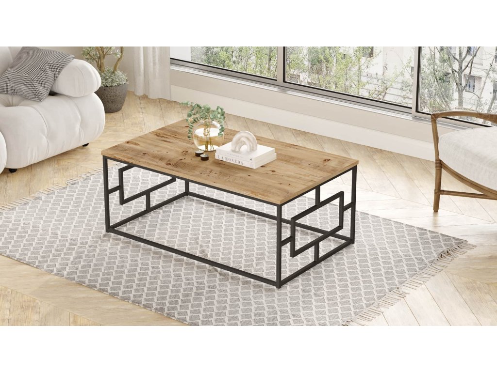 VEGY 12 loftový konferenční stolek, borovice/černý kov