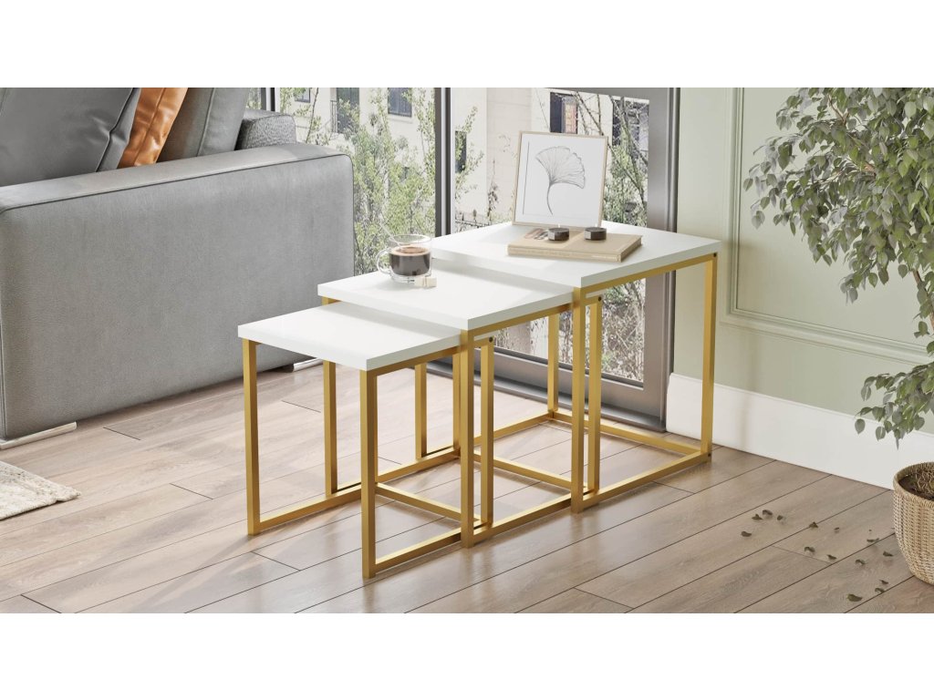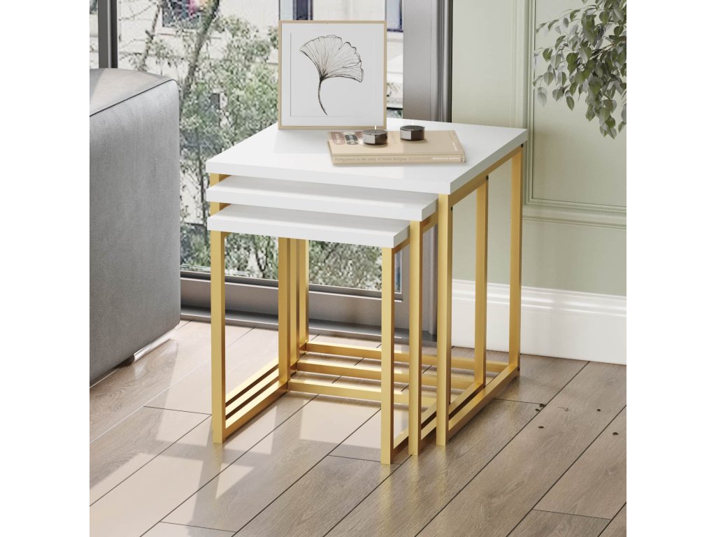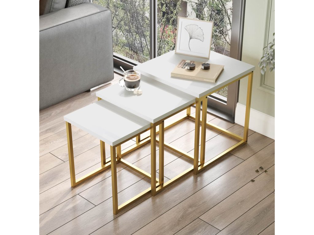 VEGY 7 sada příručních stolků, barva bílá/zlatá