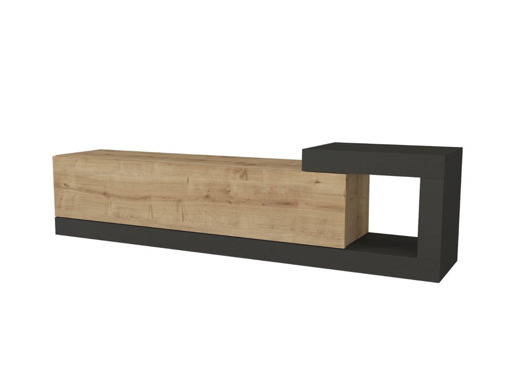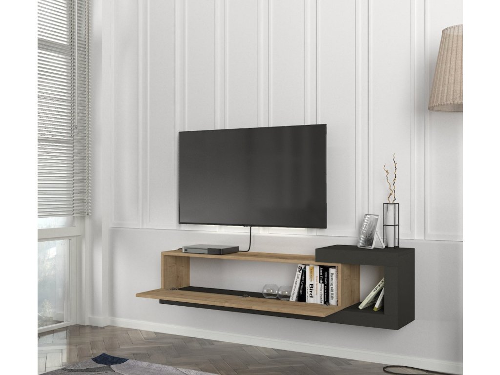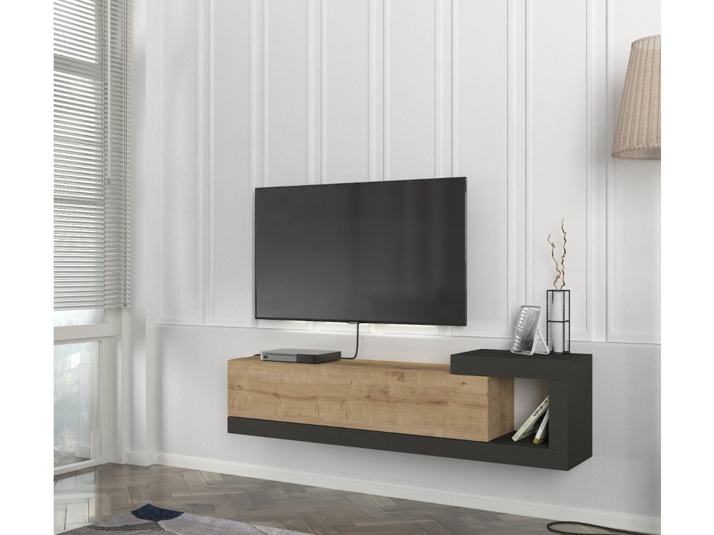Moderní a stylový TV stolek VELIERO vás osloví svým moderním a minimalistickým designem a příznivou cenou. Je ideální do moderně zařízených prostor a díky závěsnému systému působí vzdušně a stylově. TV skříňka poskytuje dostatek úložného prostoru ve formě výklopné skříňky a malé otevřené police.