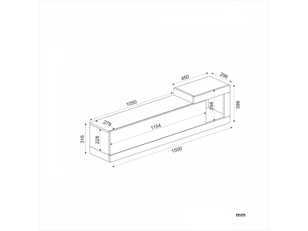 Rozměry TV stolku: (š/v/h) 150 x 38,6 x 29,6 cm