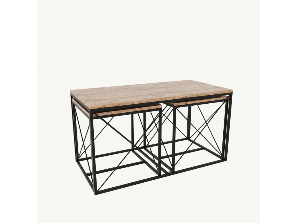 Sada konferenčních stolků se vyznačuje krásnou kombinací barev atlantické borovice a černé, která dodá vašemu obytnému prostoru nádech sofistikovanosti. Kontrastní barvy vytvářejí vizuálně přitažlivý vzhled, který okamžitě pozvedne styl každé místnosti.