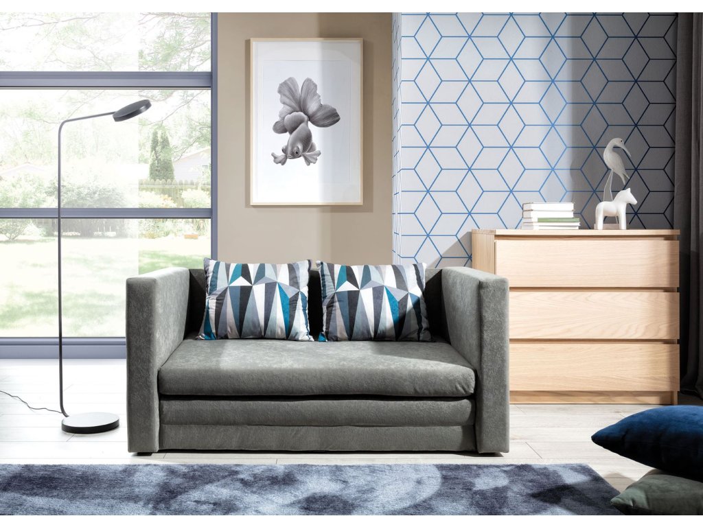 Jednoduchá pohovka NEVA 02 najde své místo v dětském pokoji pro chlapce i dívky či v pokoji pro hosty. Je velmi praktická, jelikož disponuje funkcí rozkladu, díky čemuž získáte spací plochu v rozměru 210 x 110, vhodnou pro příležitostné spaní.