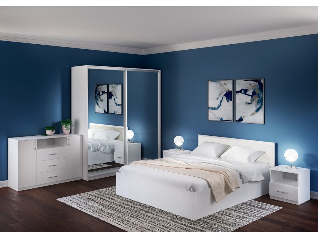 | Sestava obsahuje: | manželská postel 160x200 (ŠxVxH) 170x95x205 2x noční stolek (ŠxVxH): 45x46,5x43 komoda (ŠxVxH): 120x84,5x46 šatní skříň (ŠxVxH): 160x210x60 cm |