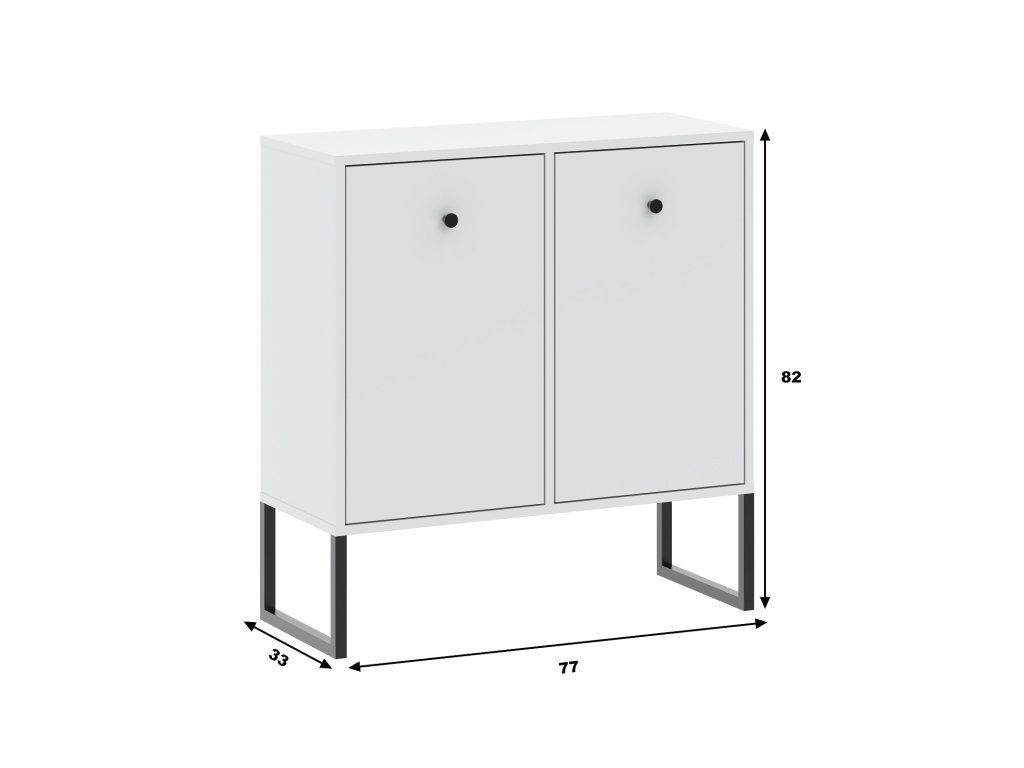 Komoda je vyrobena z kvalitních LTD desek. Jsou nenáročné na údržbu. Konstrukce kovová, v černém provedení. Komoda disponuje třemi praktickými šuplíky. Komoda je dvoudveřová.