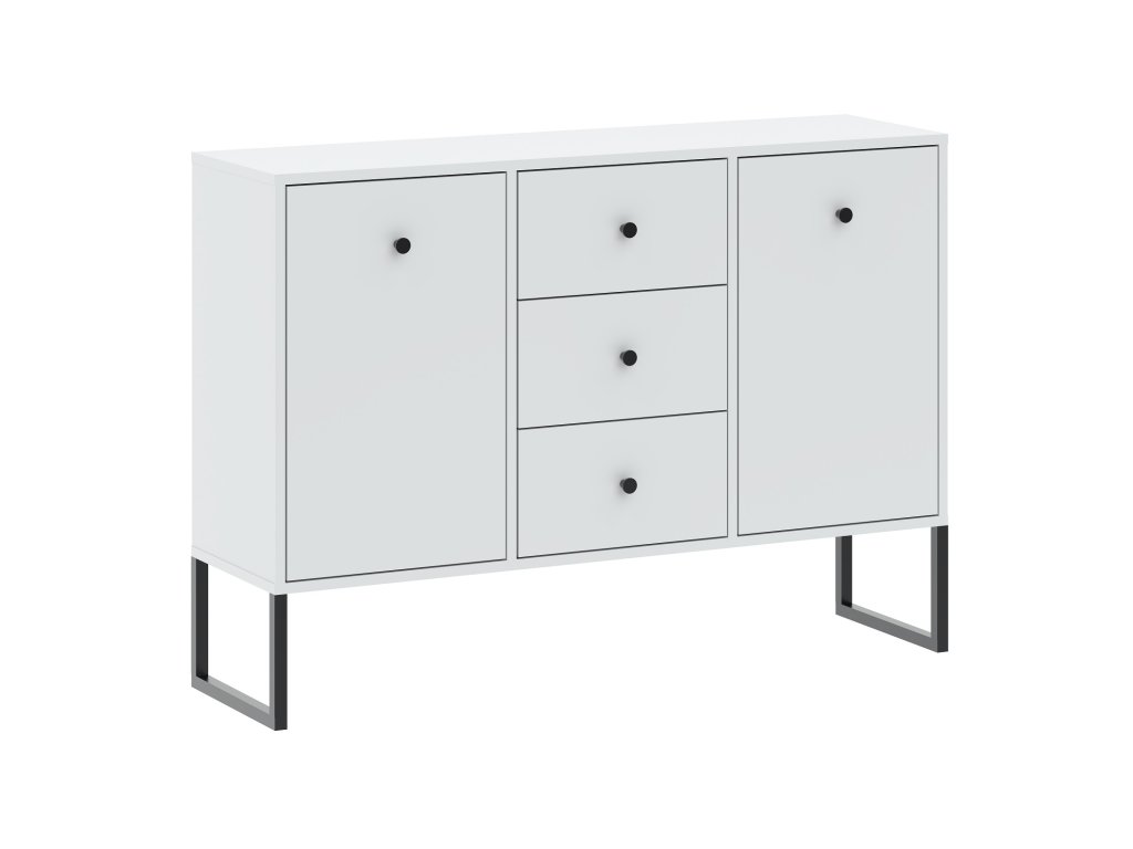 Komoda je vyrobena z kvalitních LTD desek. Jsou nenáročné na údržbu. Konstrukce kovová, v černém provedení. Komoda disponuje třemi praktickými šuplíky. Komoda je dvoudveřová, se třemi zásuvkami.