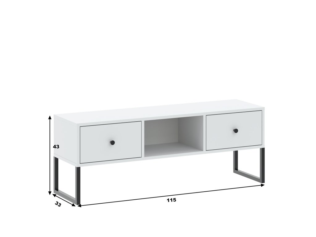 Televizní stolek je vyroben z kvalitních LTD desek. Jsou nenáročné na údržbu. Konstrukce kovová, v černém provedení. Televizní stolek disponuje dvěma zásuvkami.