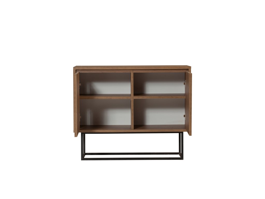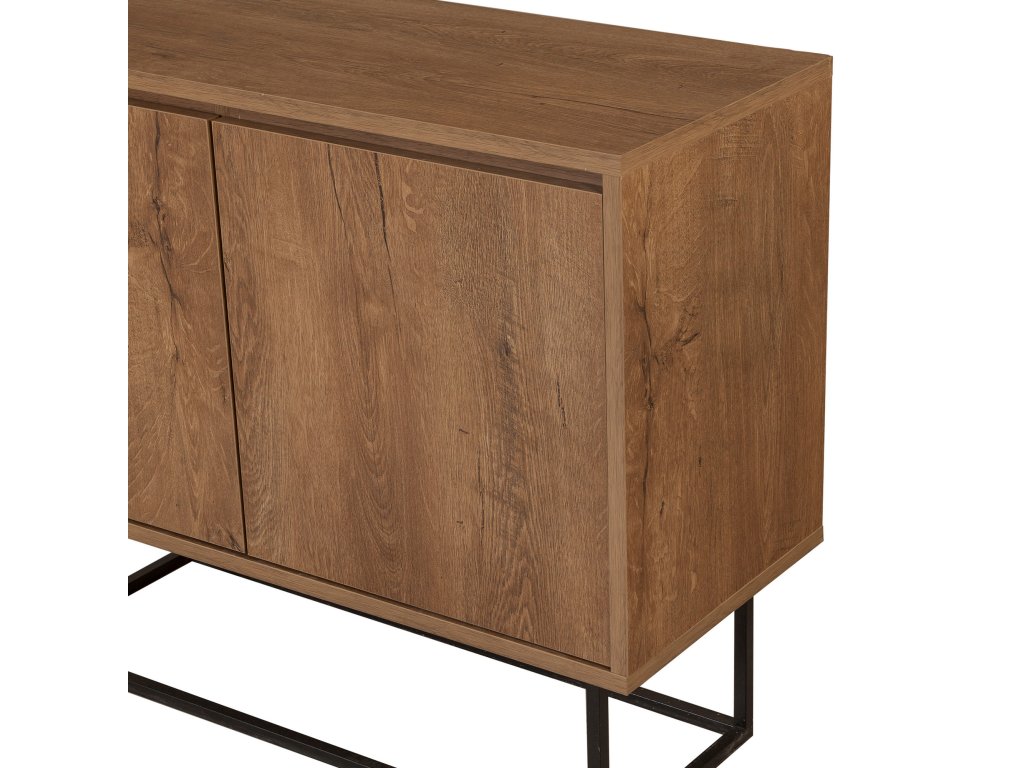 Stabilní kovové nohy nejen podtrhují industriální charakter komody, ale také zajišťují její pevnost. Materiály, jako je melamin a VT laminát, zajišťují odolnost a snadnou údržbu při každodenním používání.