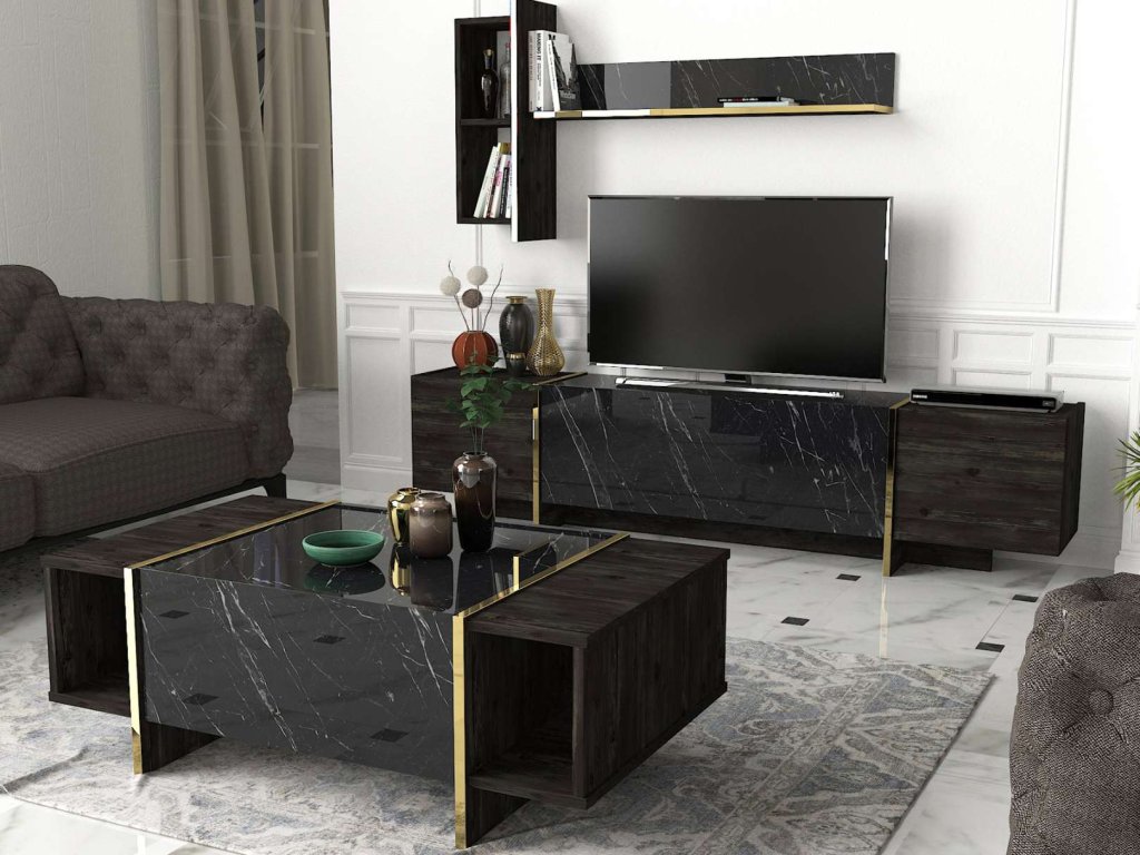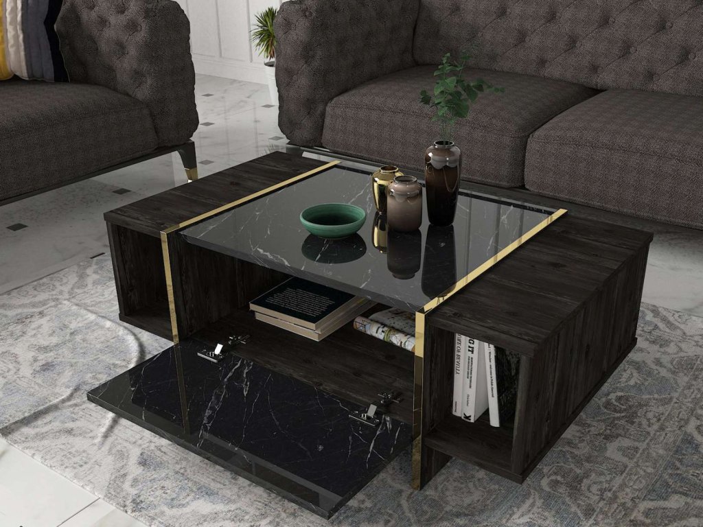 Představujeme VERONNA, luxusní konferenční stolek, který přináší do vašeho obývacího pokoje eleganci a moderní design. Tento stylový nábytek v kombinaci tmavě hnědé a mramorové barvy je navržen tak, aby poskytoval praktické a estetické řešení pro vaše úložné potřeby.