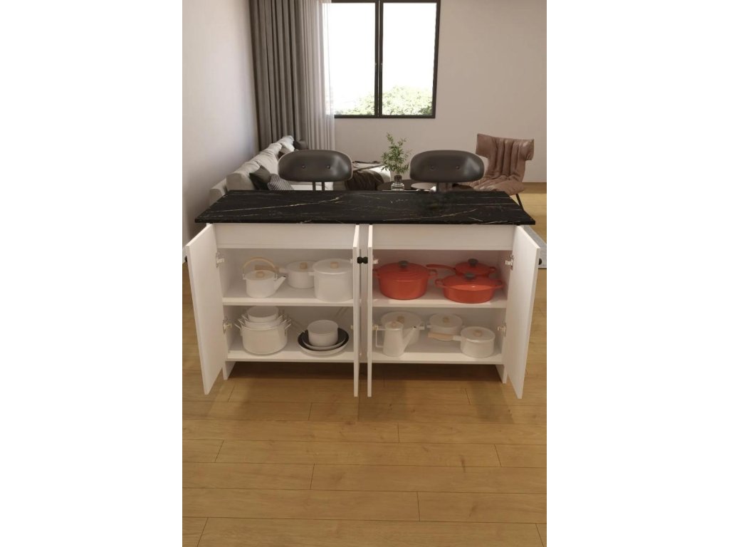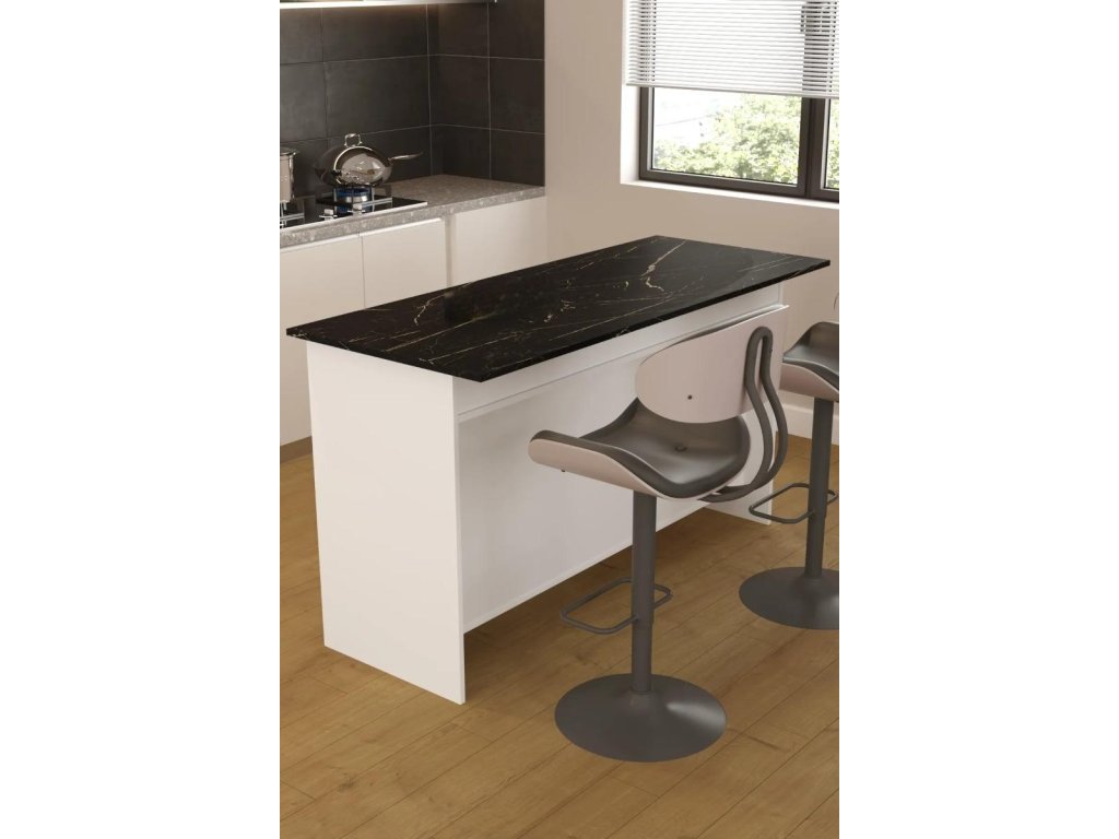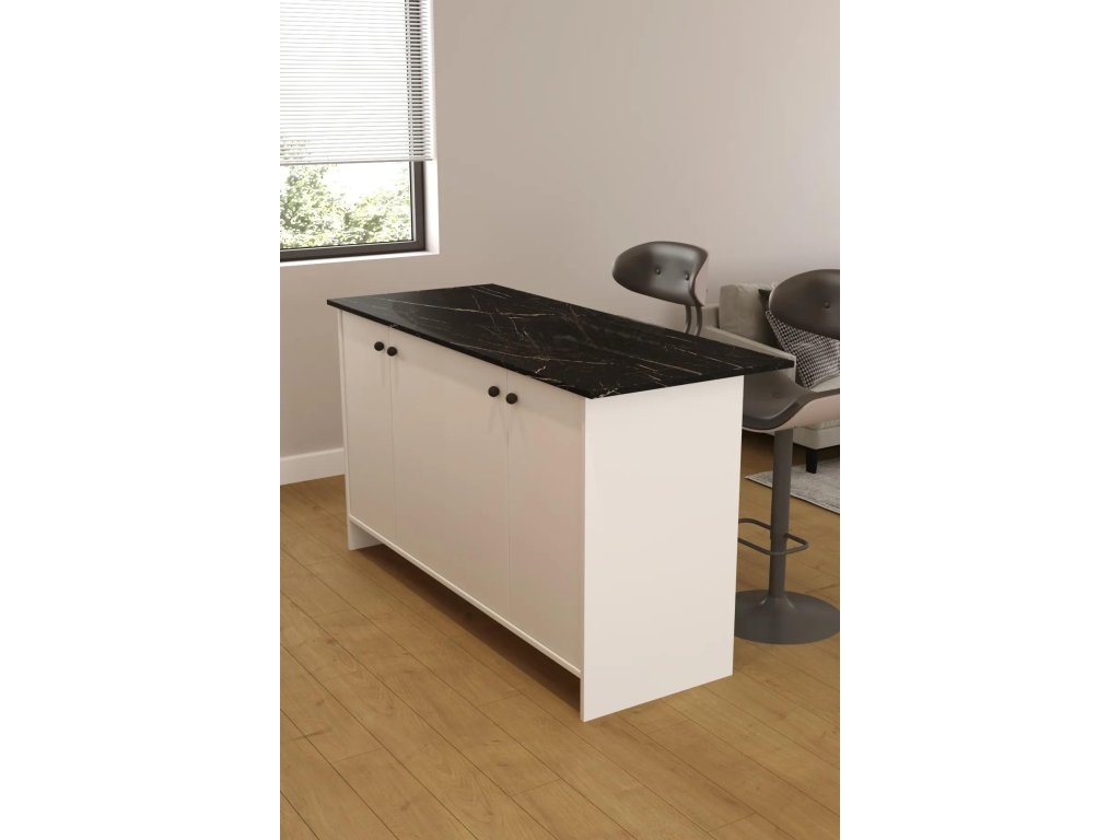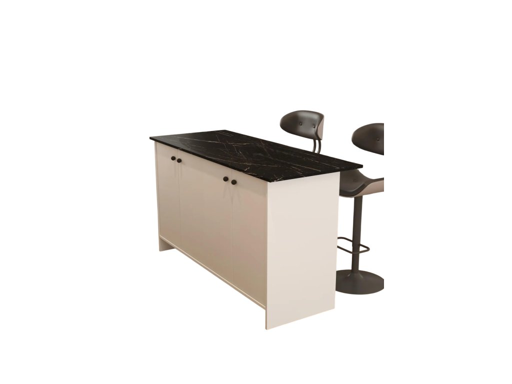 Kuchyňský ostrůvek s funkcí barového i jídelního stolu se skříňkou, víceúčelový nábytek s rozměrem 160 × 65 cm.