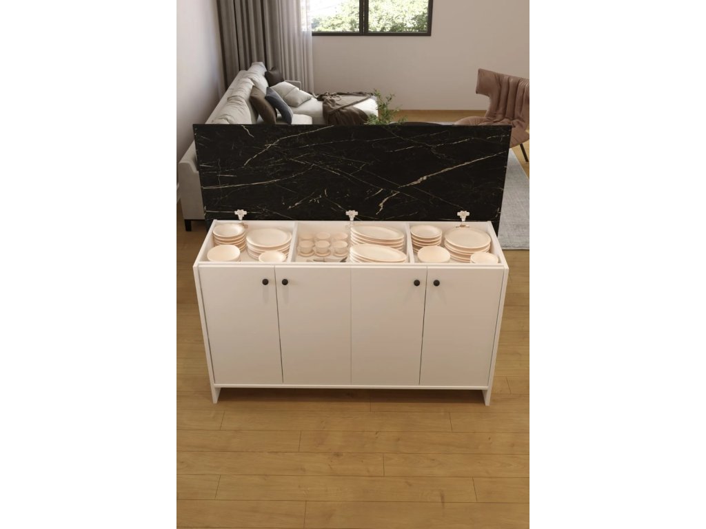 - Úložný prostor: za dvířkami 2 police + výklopná horní deska s přihrádkami