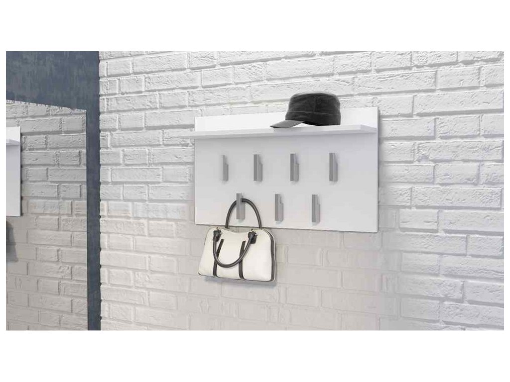 Věšákový panel DENTON je navržen tak, aby vám pomohl udržet pořádek ve vaší předsíni. Jeho moderní design v bílé barvě zapadne do různých interiérů. S odkládací poličkou budete mít místo na uložení klíčů, kapesníků a dalších drobností.