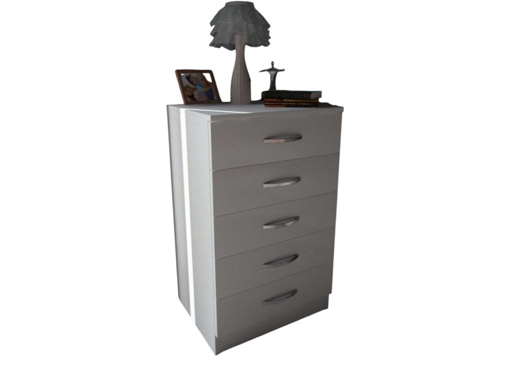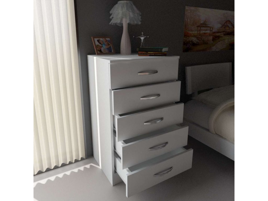 Komoda VIDA K5D se vyznačuje elegantním bílým provedením, které snadno zapadne do jakéhokoliv interiéru. Díky pěti prostorným zásuvkám poskytuje dostatek úložného prostoru pro vaše věci, což vám pomůže udržet váš obývací pokoj nebo ložnici uspořádanou a čistou.