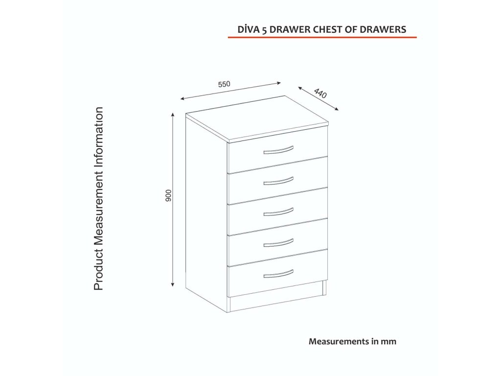 Díky materiálu LTD o tloušťce 18 mm je tato komoda robustní a odolná, což zaručuje její dlouhou životnost. Komodu VIDA K5D dodáváme v demontu, což usnadňuje její přepravu a montáž.