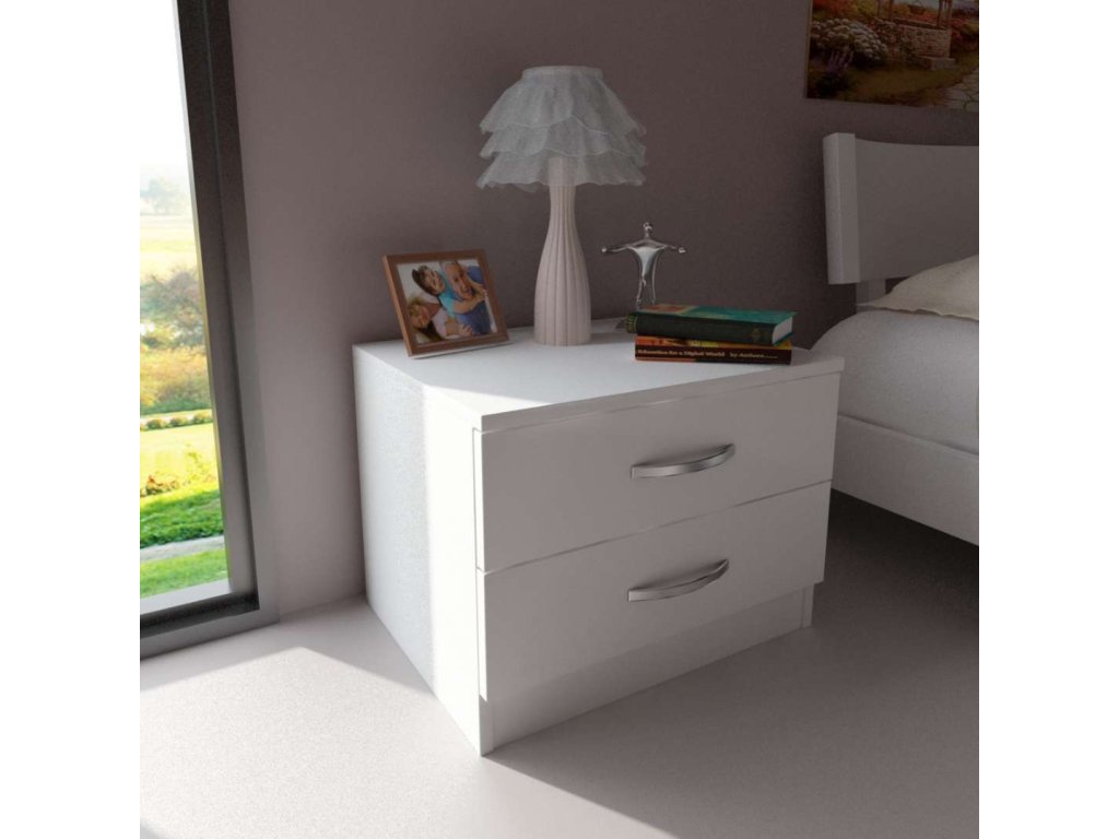 Noční stolek VIDA N2D se vyznačuje elegantním bílým provedením, které snadno zapadne do jakéhokoliv interiéru. Díky dvěma prostorným zásuvkám poskytuje dostatek úložného prostoru pro vaše nezbytnosti, ať už v ložnici vedle postele nebo v obývacím pokoji jako praktický odkládací stolek.