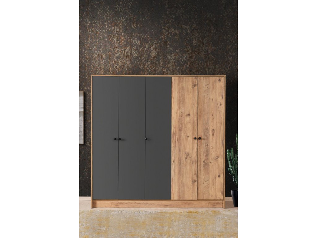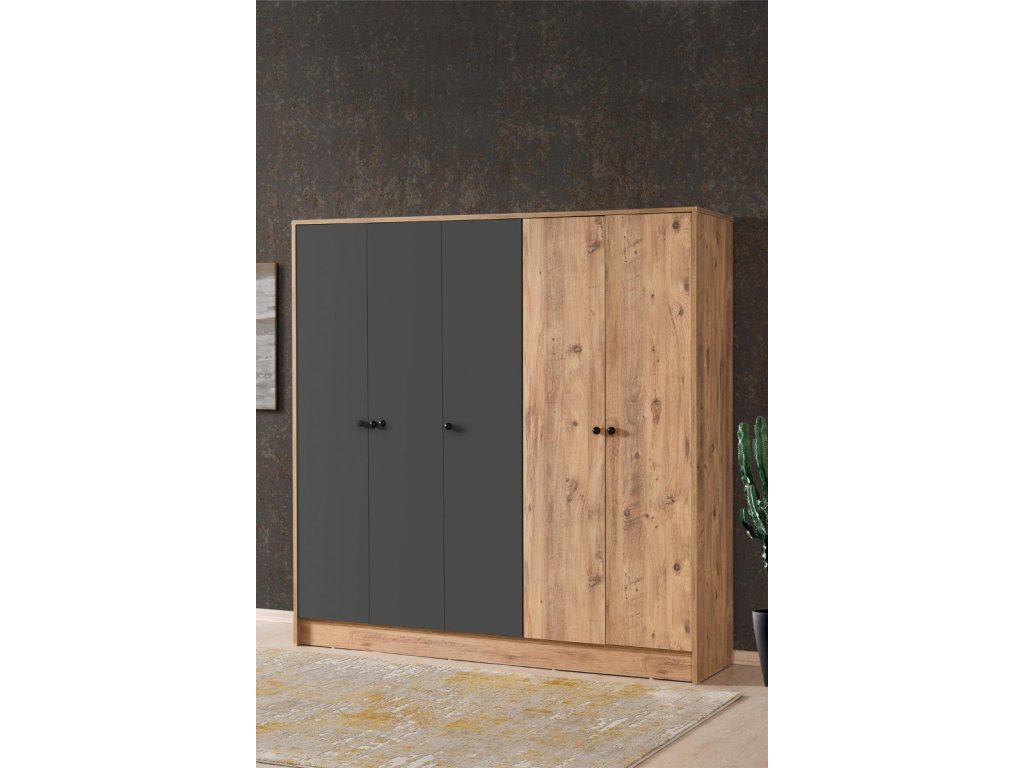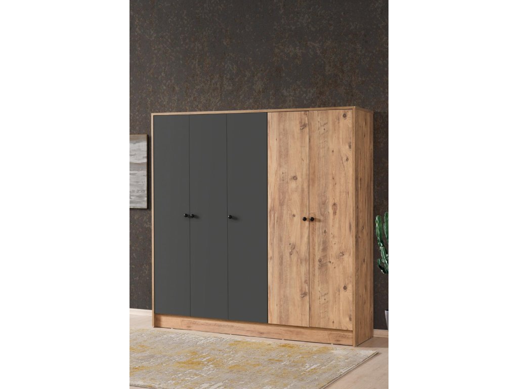 Představujeme vám pětidveřovou šatní skříň VIDA v elegantní kombinaci antracitu a borovice. Tato stylová skříň dokonale doplní váš interiér a poskytne vám dostatek úložného prostoru.