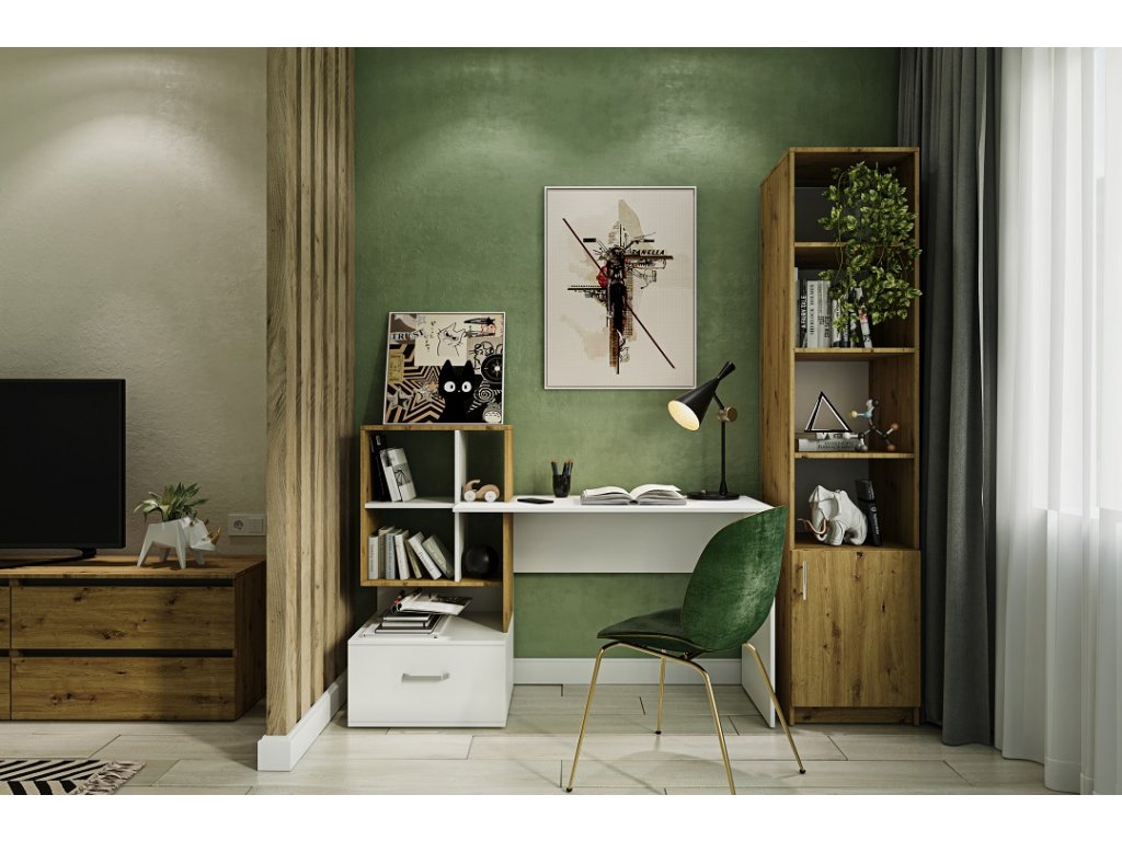 VILAND je psací stůl v moderním a jednoduchém provedení s praktickým úložným prostorem. Je ve stylovém barevném provedení dub Artisan, nymfea.