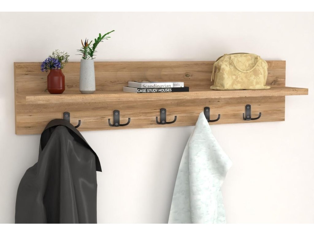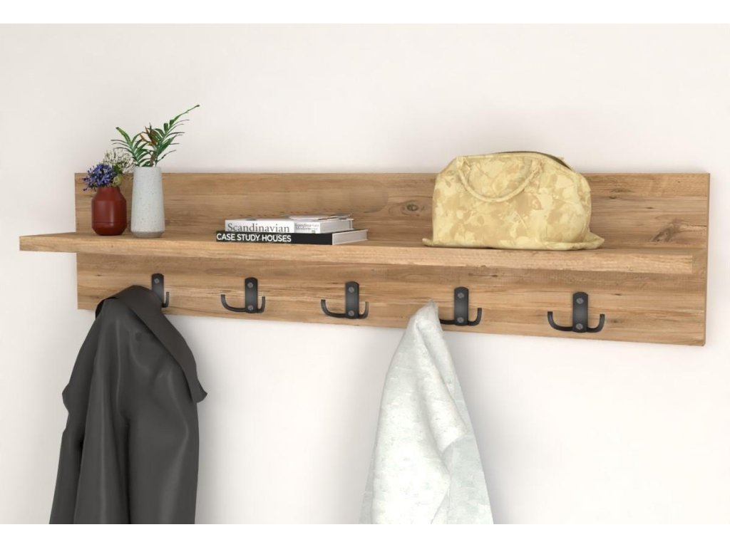Je vyroben z kvalitní LTD desky, která je nenáročná na údržbu. Tloušťka 18 mm. Disponuje pěti háčky pro uložení kabátů či bund.