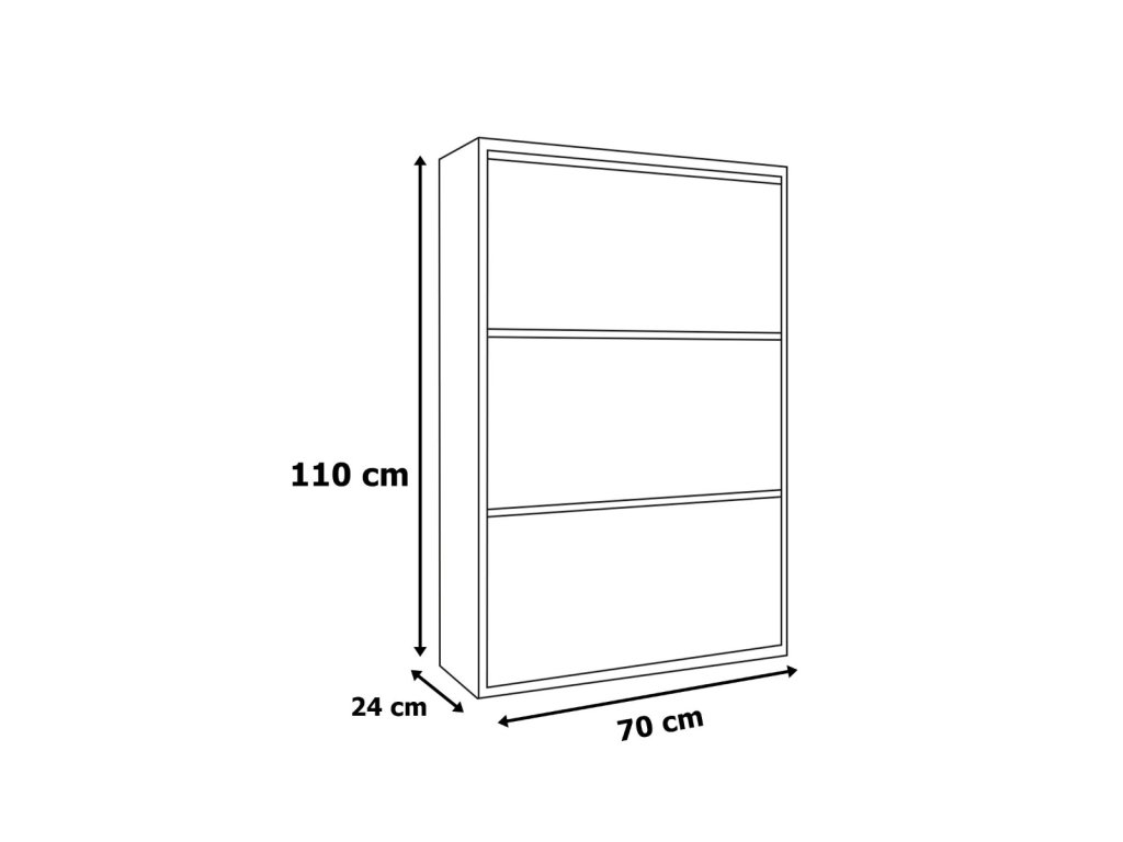 Botník VISTON je vybaven 3 výklopnými přihrádkami, které poskytují dostatek úložného prostoru pro vaše boty a usnadňují jejich organizaci. Vyrobena z kvalitní dřevotřísky potažené melaminem, skříňka na boty VISTON zajišťuje dlouhou životnost a odolnost.